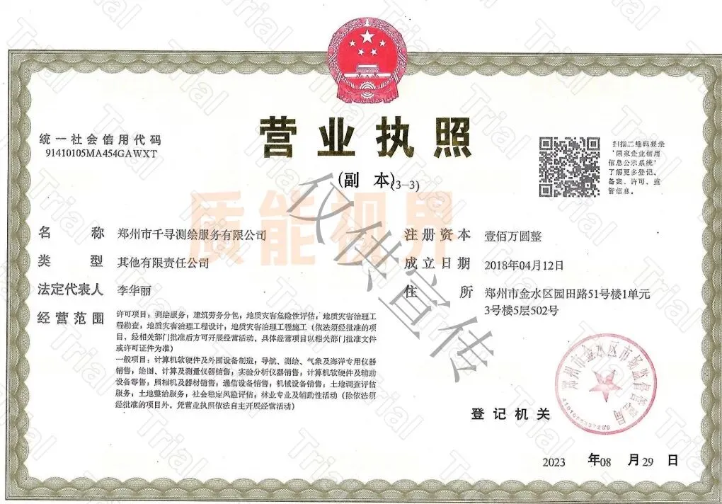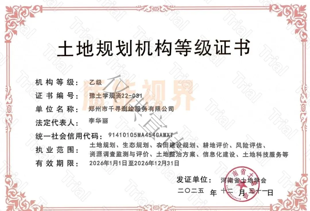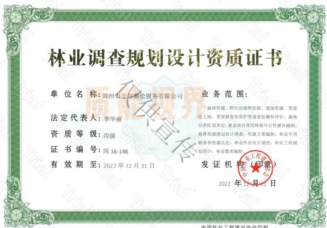 >【郑州市千寻测绘服务有限公司】林业调查规划设计丙级;土地规划+摄影测量与遥感测绘