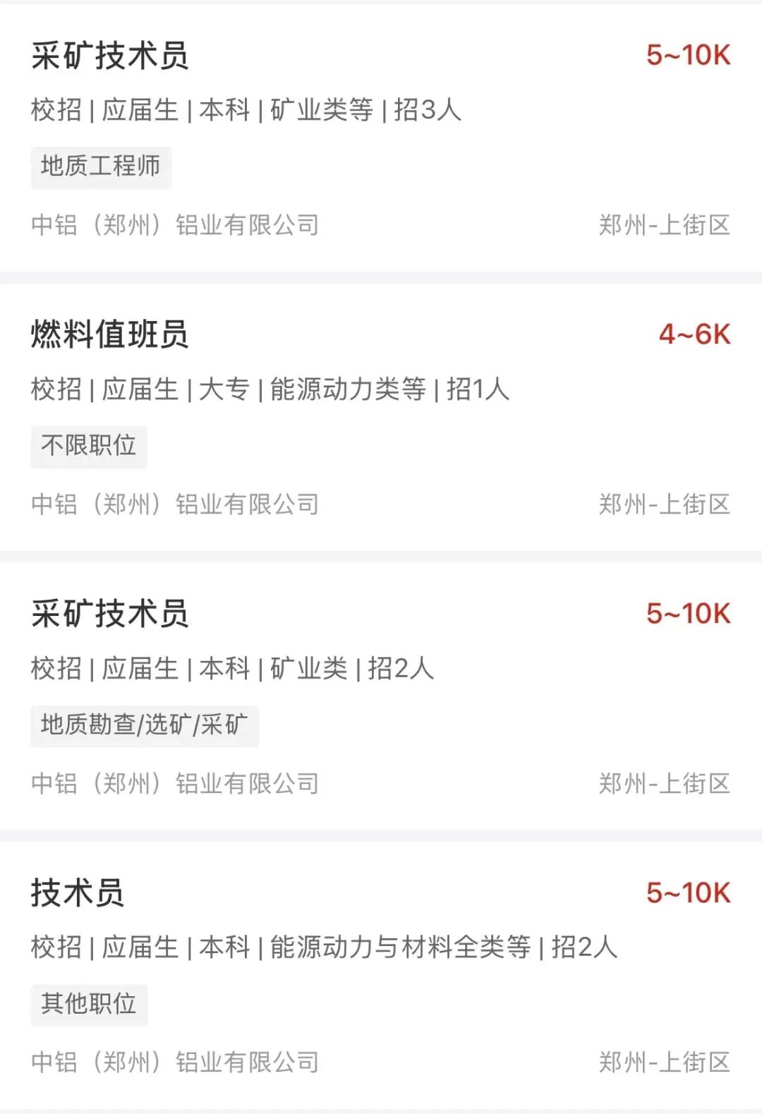 中铝(郑州)铝业有限公司(以下简称郑州铝业)前身是始建于1958年我国第二个五年计划时期建设的郑州铝厂,1992年组建为中国长城铝业公司(以下简称长城铝业),2002年1月,原长城铝业氧化铝和电解铝板块资产重组上市,成立中国铝业河南分公司(以下简称河南分公司),存续部分仍称长城铝业。招聘岗位速览