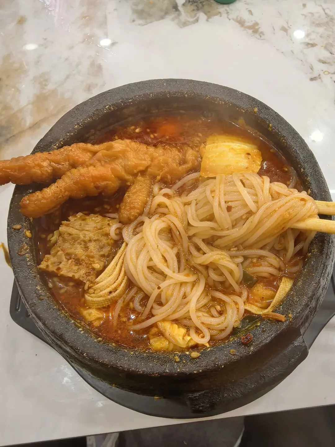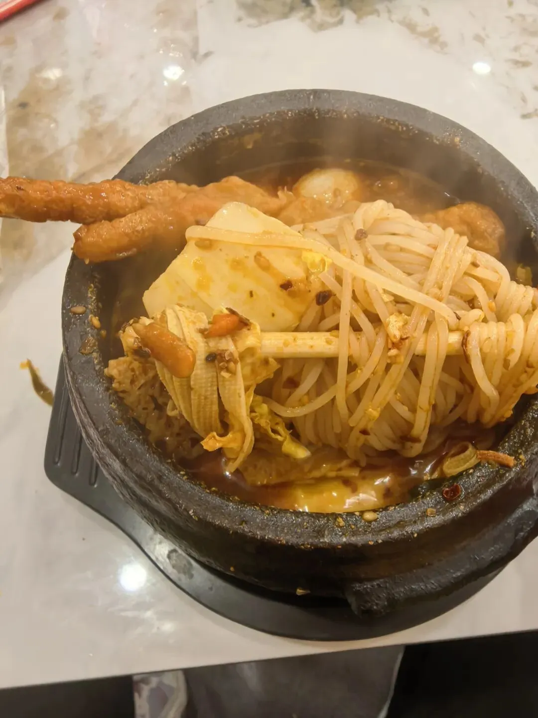 他家的砂锅米线不是齁咸那种,也不糊嘴,放的有芝麻盐,粘稠又不腻的慌。