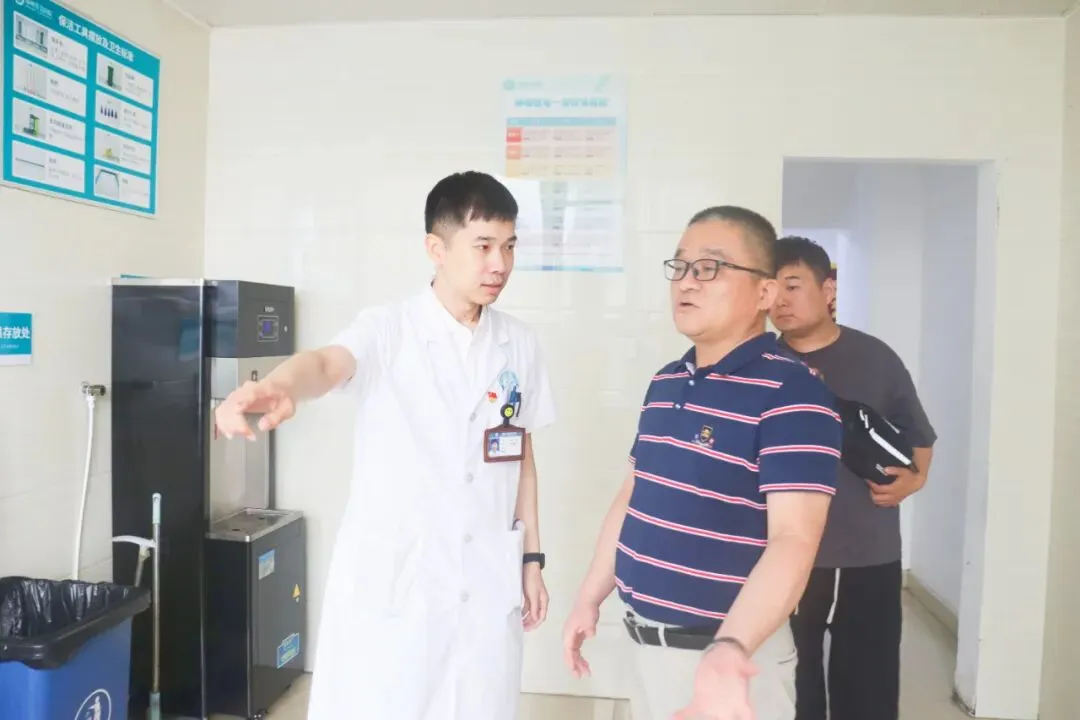 在田辉院长的亲切陪同下,王刚主任一行深入医院各个角落,从繁忙而有序的门诊大厅开始,到设备先进的体检中心,再到精密细致的手术室、温馨舒适的肿瘤住院病房,直至守护生命健康的血液透析中心……每一步都凝聚着对医疗质量的严格把控和对患者关怀的深切体现。他们的目光所及,是誉美肿瘤医院不断追求卓越、创新发展的坚实步伐。