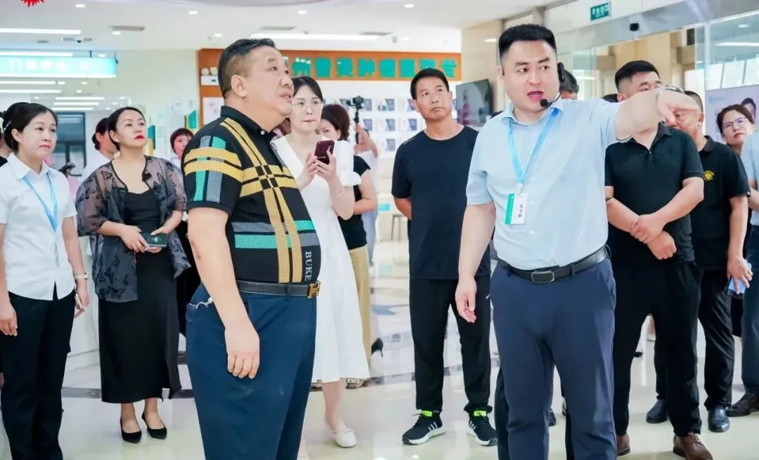 上午9时,代表团在医院门诊大厅集合,开始了他们的参观之旅。首先,他们来到配备先进医疗设备的放射科和为市民提供全面的体检服务的体检中心。接着,企业家们参观了血液净化中心,这里采用的血液净化技术为患者带来了新的希望。之后重点参观了肿瘤病房,介绍了我院肿瘤病区先进管理理念以及医疗技术,展示了我院在肿瘤治疗领域的专业和实力。在14楼的会议室里,一场关于经营管理理念和品牌建设体系的座谈会热烈展开。王红亮总经理、田辉副院长和王淞主任等人与各位企业家就我院的经营模式、管理理念、肿瘤专科连锁品牌策略等议题展开了深入而富有成效的讨论。