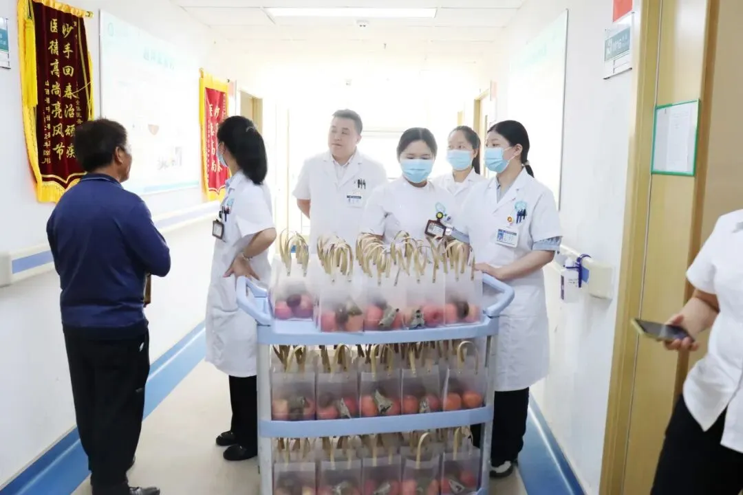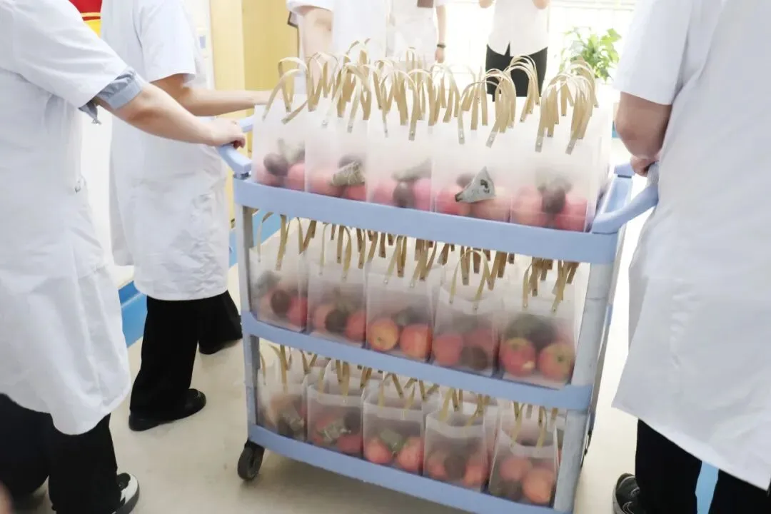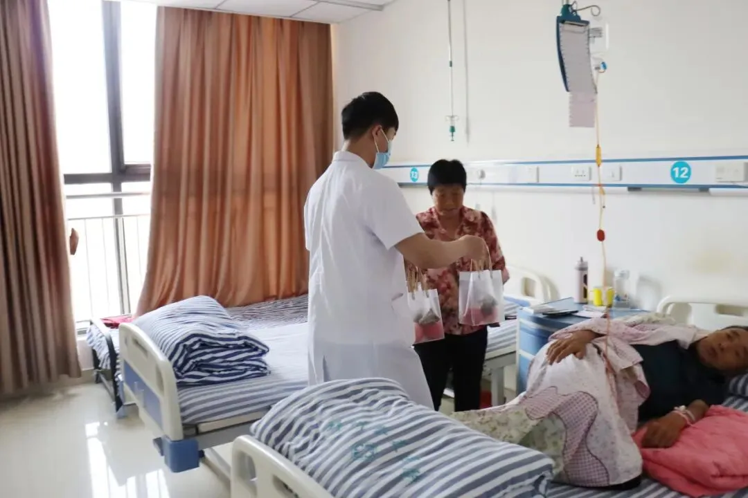 片片粽叶香,浓浓医患情!一大早,医护人员将粽子、水果等礼包送到了患者和家属的手中,让每一位在院的患者及家属都感受到了家的温暖和节日的祝福。一句句温馨的祝福,一张张开心的笑脸,病房里洋溢着浓浓的节日氛围。