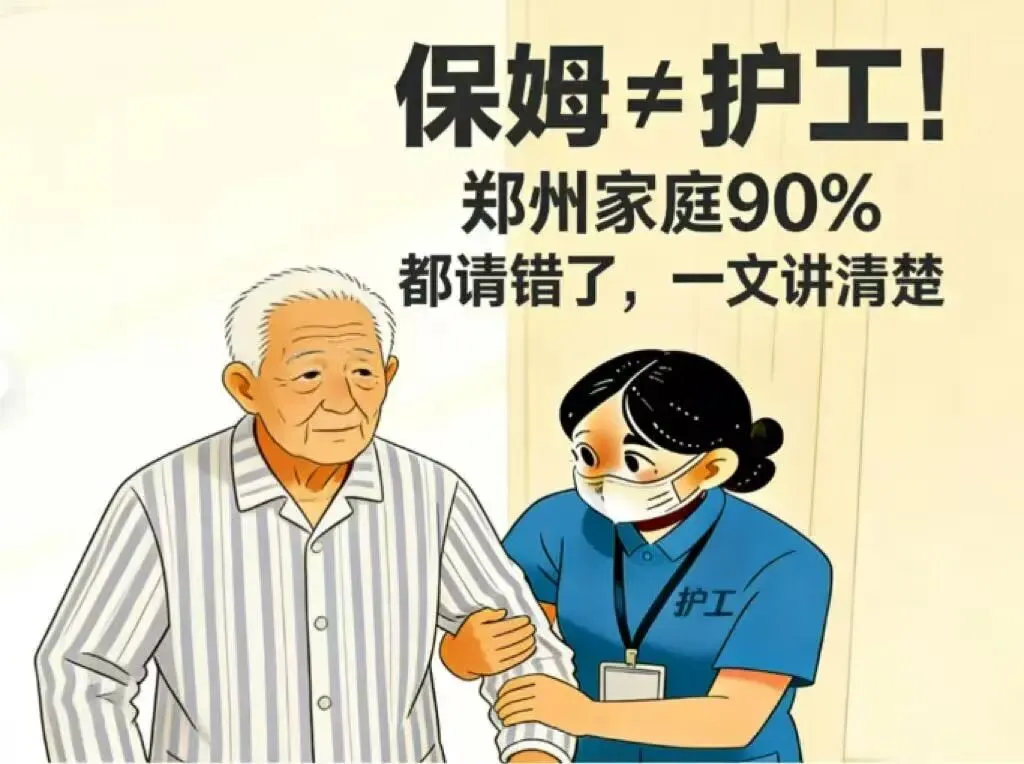 很多郑州家庭请护理人员时,都有一个误区:“请个人就行,保姆和护工没区别”。其实两者差别非常大,选不对,既多花钱又不专业。