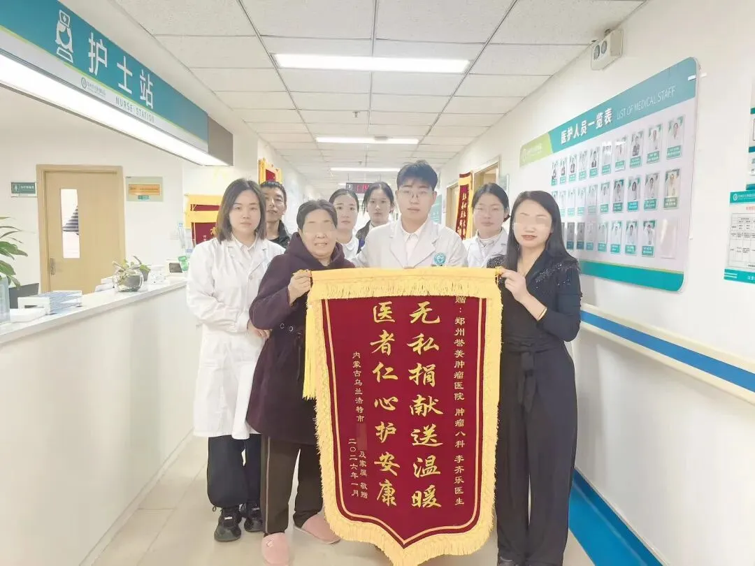 在治疗过程中,李医生不仅凭借专业的医疗技术悉心诊治,还时刻关注孙女士的情绪变化,耐心解答她和家属的每一个疑问,用暖心的关怀缓解他们的焦虑。经过一段时间的治疗,孙女士的血小板指数成功趋于正常,身体状况得到了稳定,为后续治疗赢得了宝贵的机会。为了感谢李齐乐医生的专业救治与贴心照料,孙女士特地送来锦旗,一句“医者仁心护安康”,道尽了患者对医生的信任与感激。