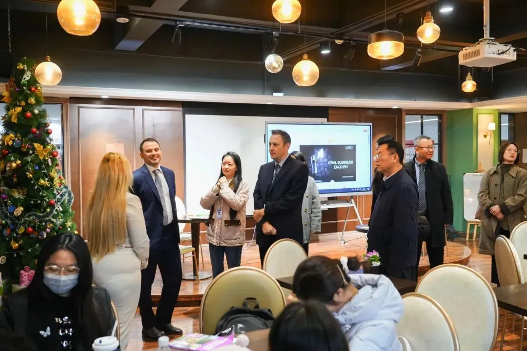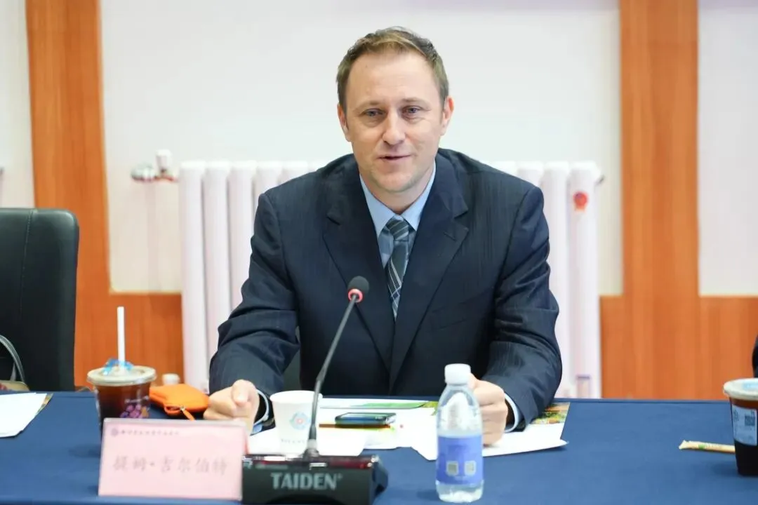 提姆·吉尔伯特致辞。他对郑州升达经贸管理学院的热情接待表示感谢,介绍了墨尔本理工学院在建筑学和IT领域的学科优势、教学特色及国际影响力,表达了与升达学院深化合作、携手共进的强烈意愿,希望双方进一步加强教学资源共享、师资互访交流,优化人才培养模式,助力两校合作迈上新台阶,培养更多具备国际视野、专业素养的建筑人才。