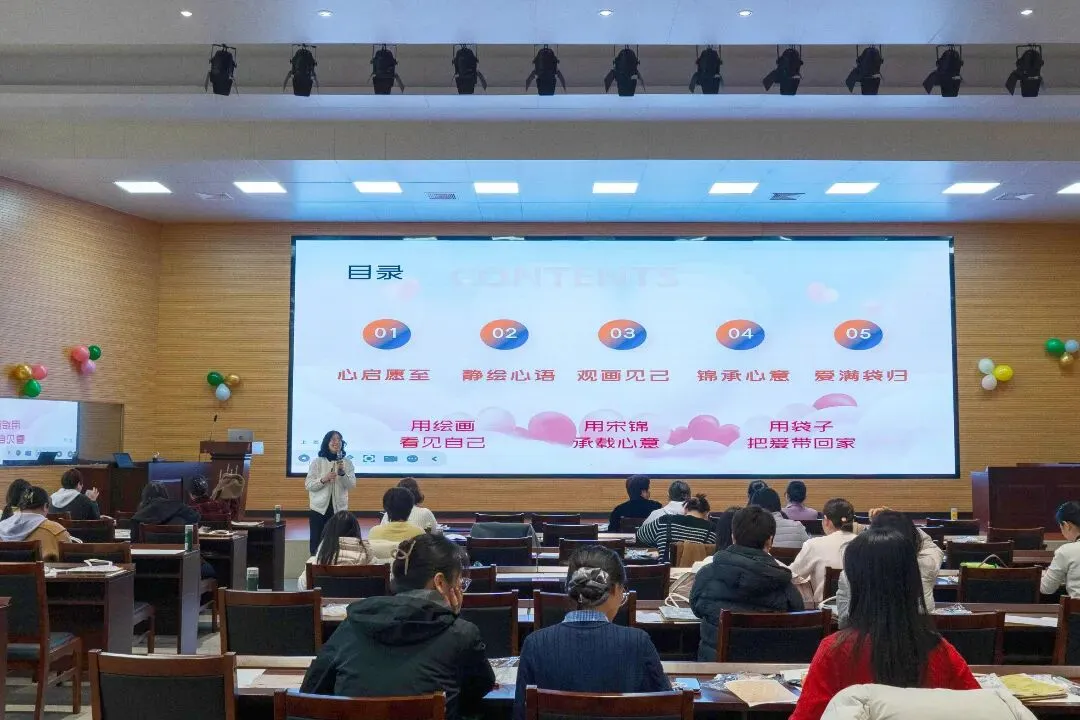 三月春风暖,巾帼绽芳华。为深入落实女职工人文关怀与心理健康关爱工作,3月17日下午,由学校工会联合学生处大学生心理健康教育中心、学校心理健康服务站主办的2026年女职工自我成长团体心理辅导活动在聆心讲堂温情开展。本次活动以“妙笔生花·‘袋’爱回家”为主题,吸引了来自学校10个分工会的100余名女职工积极参与。