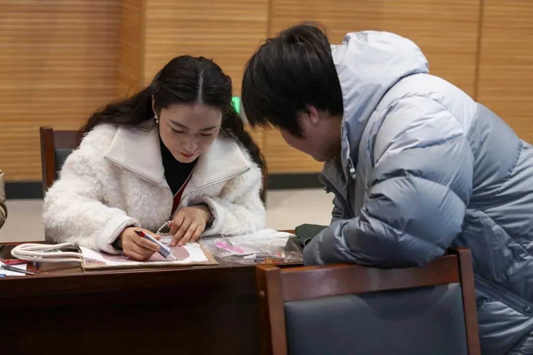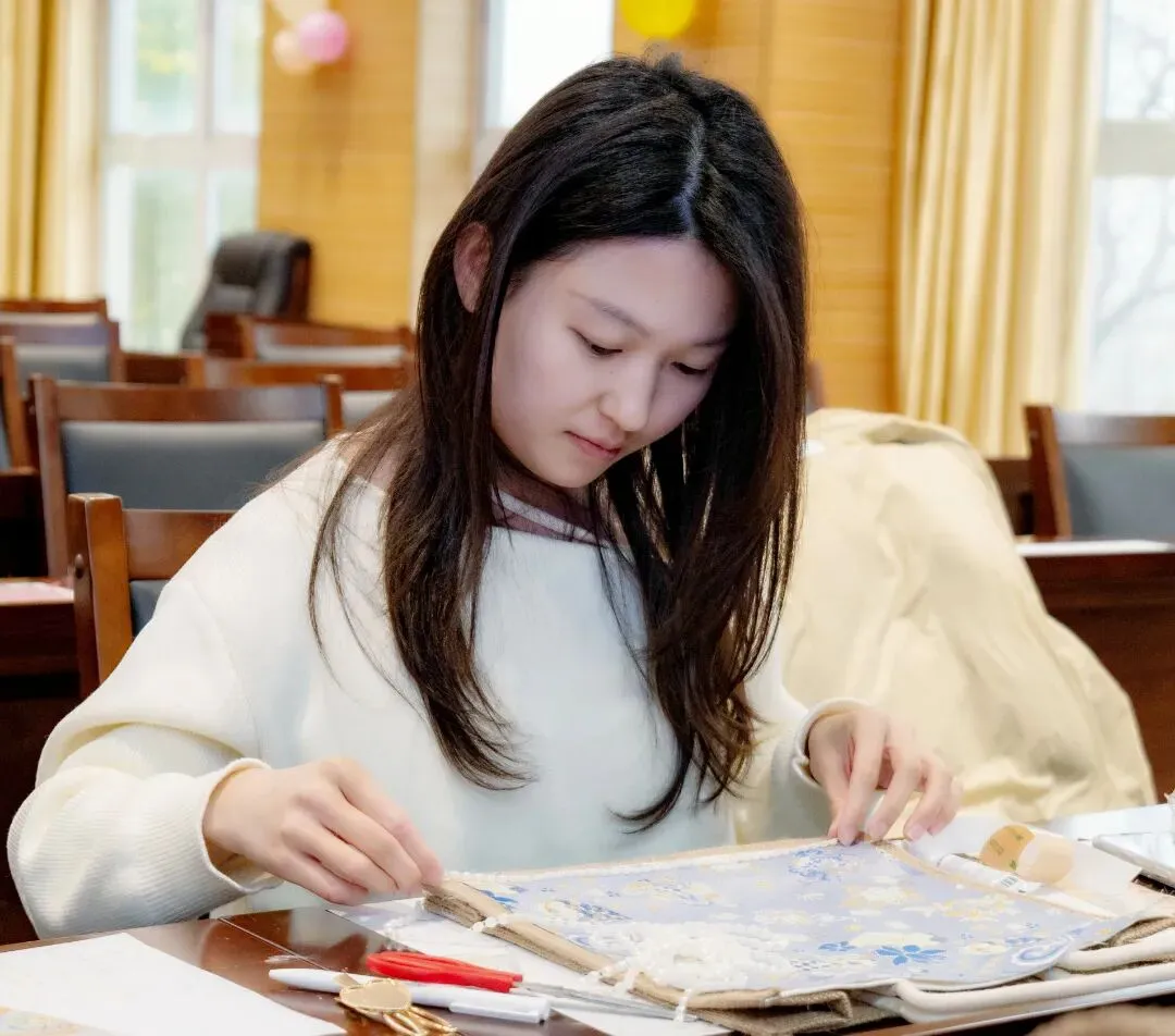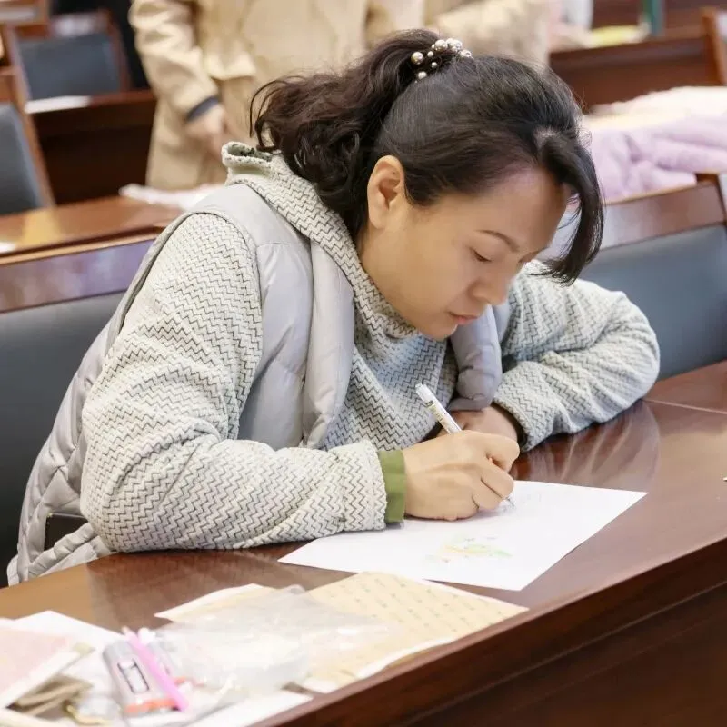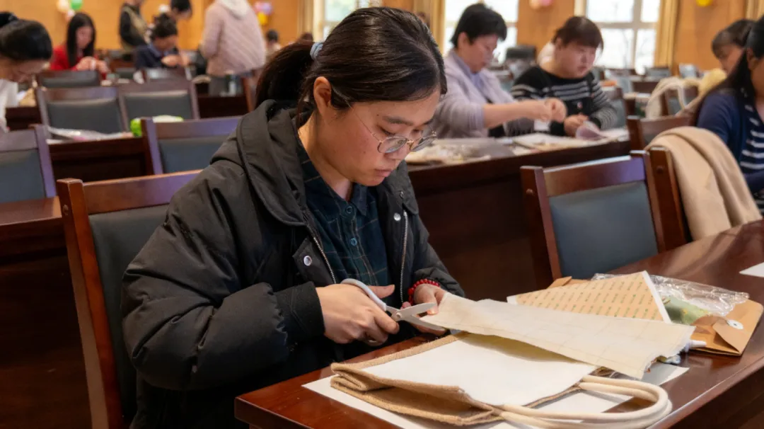 结合路老师绘画心理讲解,在融合了非遗文化的“锦承心意”环节,女职工们亲手制作宋锦DIY手提袋,在针线与织物的交织中,沉浸式感受传统文化的温度与美感。