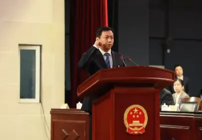 新当选的中牟县人民政府县长景晓明进行宪法宣誓。