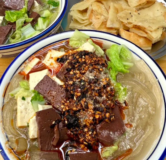 扁粉菜来一碗,热气顶上来,人就清醒了。粉条软滑,豆腐吸汤,白菜带点甜,胡椒一落,鼻子先通。配个油馍头,外酥里暄,掰开蘸汤,犯困都能被拽走。