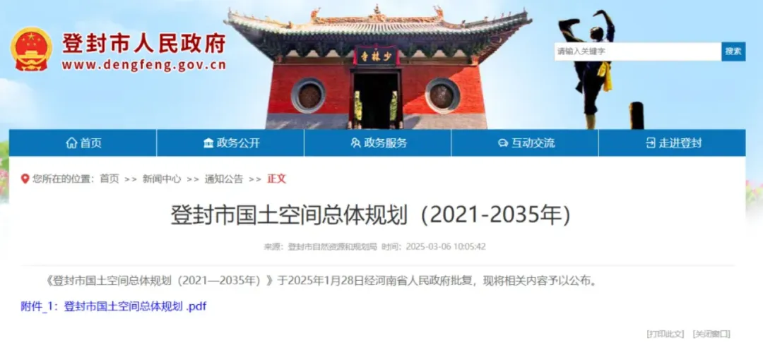2025年1月28日,河南省政府正式批复了登封市国土空间总体规划。