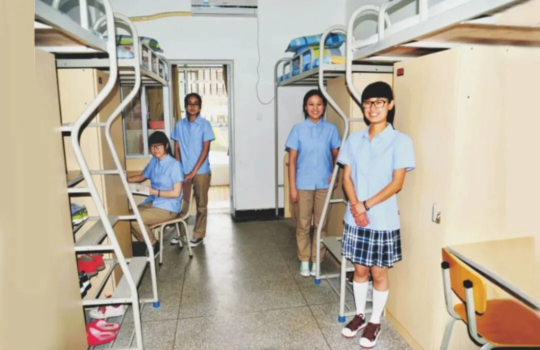 学生宿舍“君子居”“淑女阁”拥有房间近500间。宿舍设置“光电一体”学生浴室。宿舍楼外墙安装防入侵红外系统,每个楼层都装有全自动洗衣机、安全电吹风机等,提供24小时热水供给;每间宿舍都安装有冷暖空调、拥有独立卫生间。学生宿舍建立夜班医生、夜巡保安、宿管老师、行政值班联动的安防体系,确保学生就寝安全。