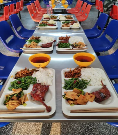 学校餐厅共三层,是“河南省中小学一级食堂”,可供2000多人同时就餐。餐厅设备齐全,后厨安装有明厨亮灶系统,每个楼层均有中央空调,就餐环境温馨舒适。所有教职工与学生同时、同地、同价就餐。餐厅共有50多个窗口,200余样菜品供学生自主选择。