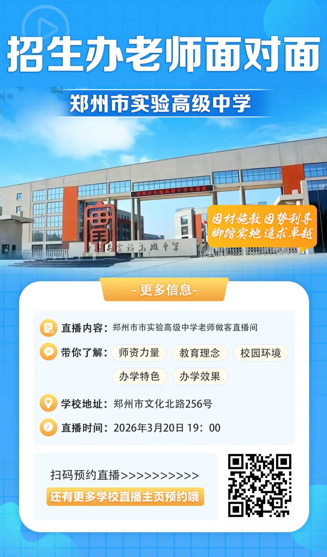 明晚郑州市实验高级中学的老师将来到咱们直播间,学校更详细的内容,大家可以扫码预约明晚直播哦!这里给大家开放了2026届郑州中考交流群,欢迎新初三的同学和家长扫码进群一起交流中考信息