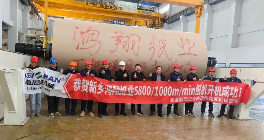 热烈祝贺河南鸿翔纸业新生产线(5800/1000m/min)成功开机,配套郑州磊展机械年产40万吨全套制浆线顺利运行!