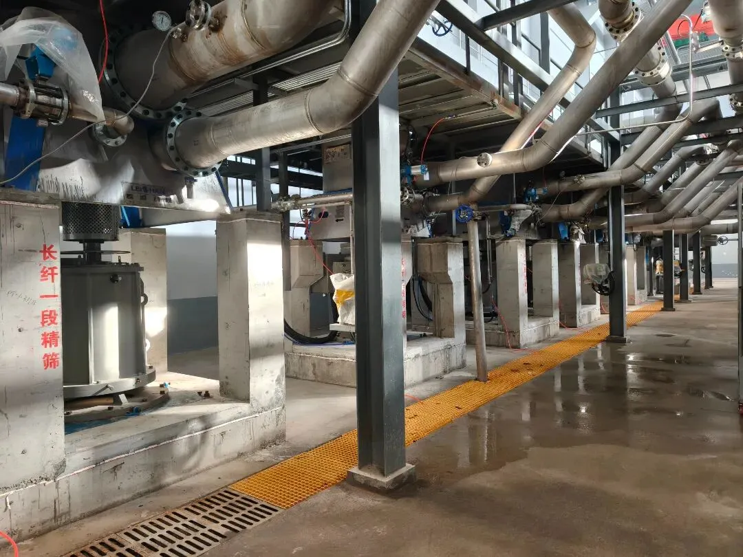 郑州磊展提供的全套制浆生产线,包括:先进的127m³D型碎浆机连续碎解系统(包含无人值守的连续液压抓斗系统)、高效节能的压力筛、分级筛和精筛、精密的网前压力筛等核心设备。其中全套设备均参与永磁直联式结构,更是此项目的一大亮点。