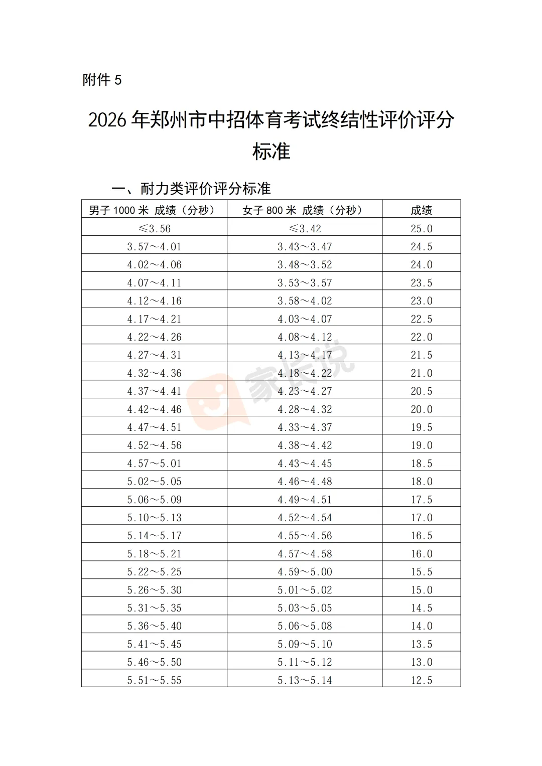 重要!2026年郑州市中招体育评分标准出炉!