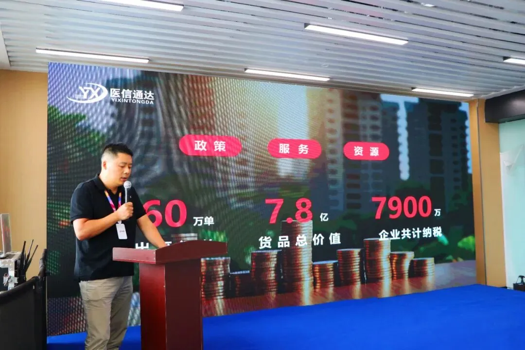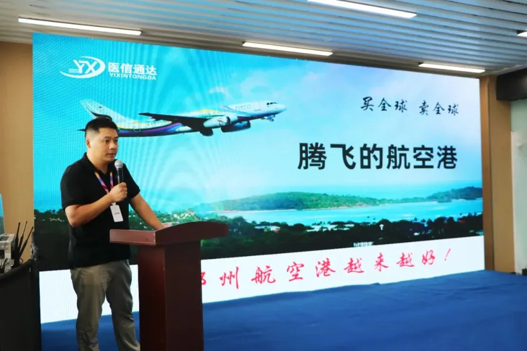 郑州航空港丝路电商大讲堂,在新郑州国际机场1688河南选品中心会议厅举办,医信通达受邀参加,陈晋华总经理代表公司上台做交流分享。