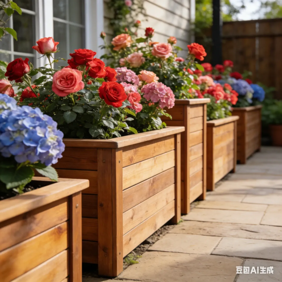 一站式采购:防腐木花箱+营养土+绿植苗木一站式配齐,专业人员免费指导养护,买防腐木不用东奔西跑。