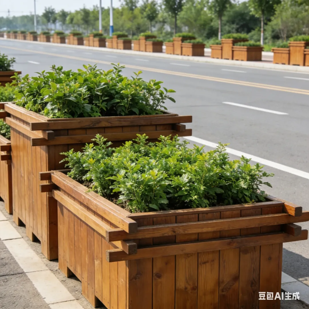 市政道路、园区、商铺、办公区绿化工程,认准郑东花卉工程款防腐木花箱,深度防腐工艺,承重强、寿命长,尺寸可按需定制,大小款式齐全,批量采购性价比高,施工摆放省心高效。