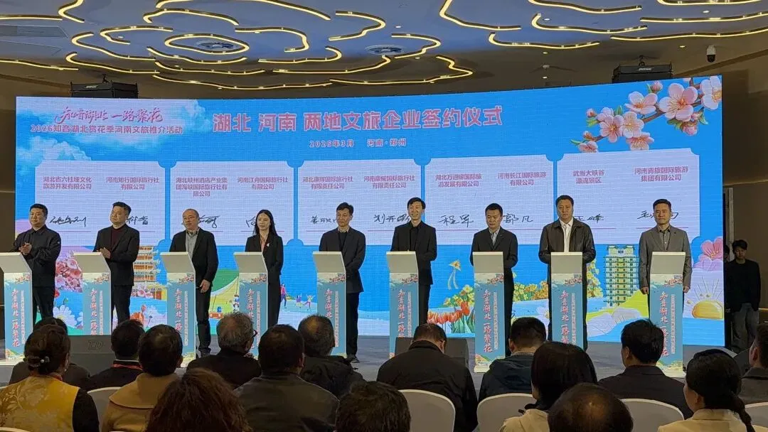 现场,丹江口市武当峡谷漂流景区与河南青旅国际旅游集团有限公司成功签订合作协议,双方将在客源互送、产品共研、品牌联推等领域开展深度合作,进一步打通鄂豫文旅客源互通渠道,实现资源共享、互利共赢。