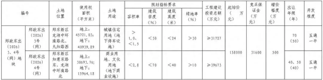 3月19日,郑州市自然资源和规划局、郑州市自然资源和规划局郑东新区分局决定以网上挂牌方式出让郑政东出〔2026〕3、4号(网)地块的国有建设用地使用权。