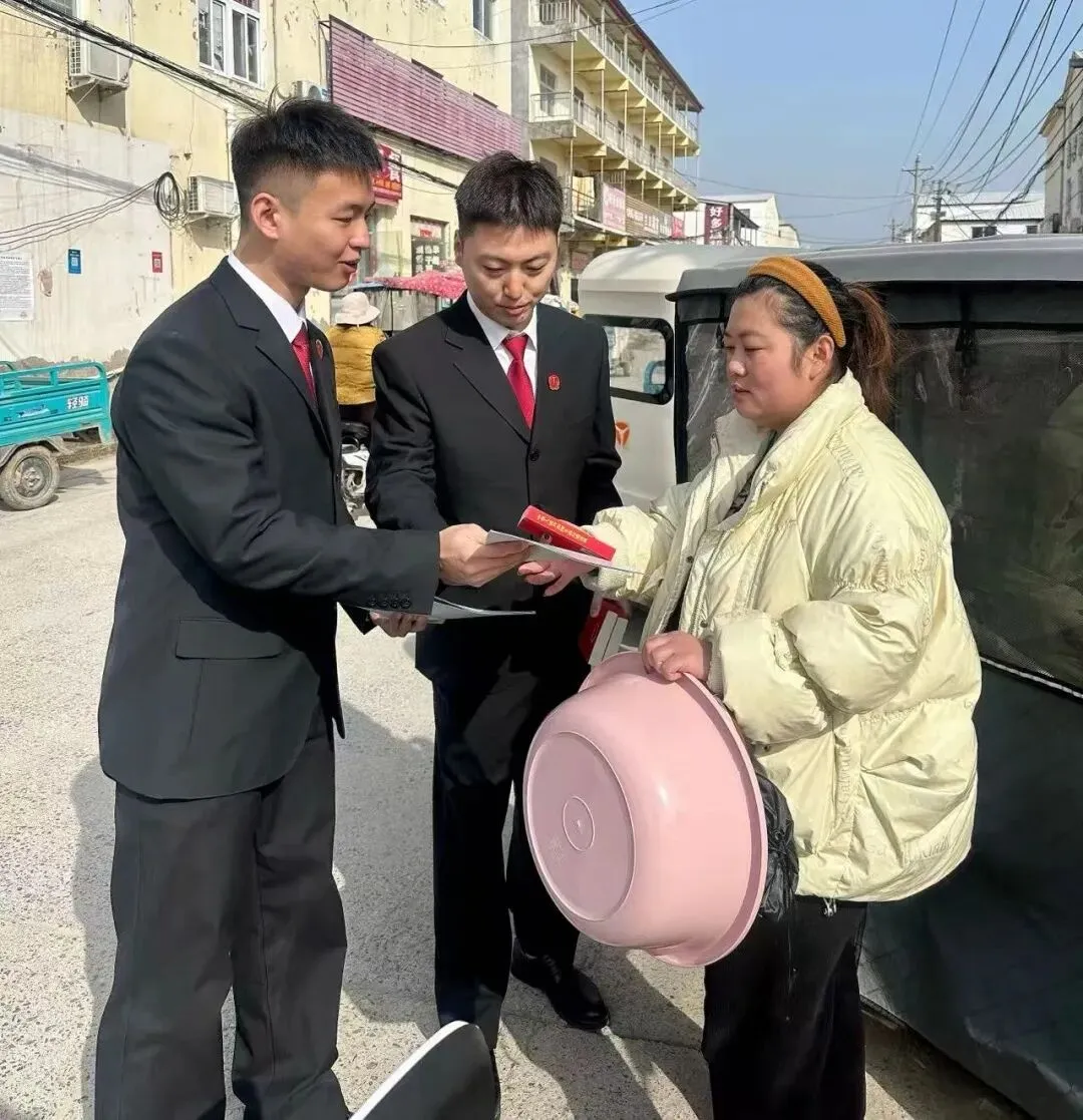 “大家可能觉得,《法典》是给法官、律师用的,跟咱们普通老百姓没关系,其实不是这样!《法典》里的许多条款都跟咱们的生活息息相关。”宣讲员站在宣传台前,用通俗易懂的语言,向现场的群众宣讲《法典》内容。