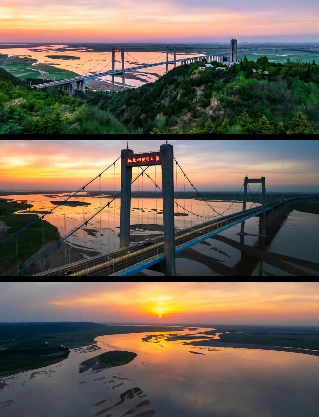 黄河边沉浸式追日落,选对位置就能承包整片晚霞,把黄河落日的浪漫尽收眼底: