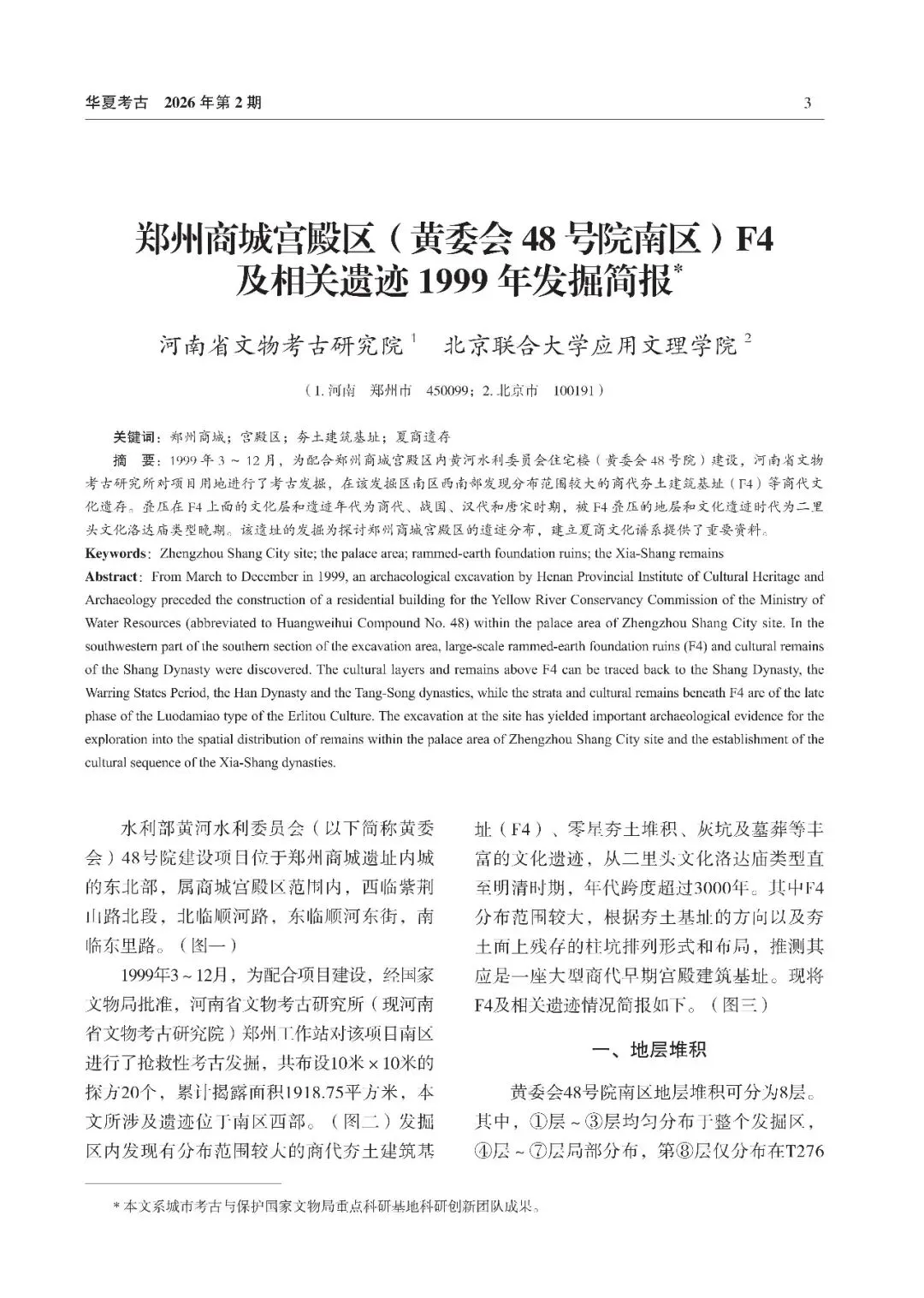 《华夏考古》2026年第2期|郑州商城宫殿区(黄委会 48 号院南区)F4及相关遗迹1999年发掘简报