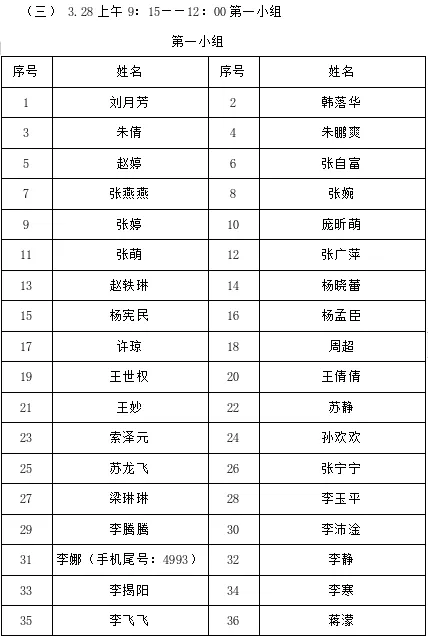 由于人数过多,面试将分组进行,请面试人员务必按序号和时段准时参与。
