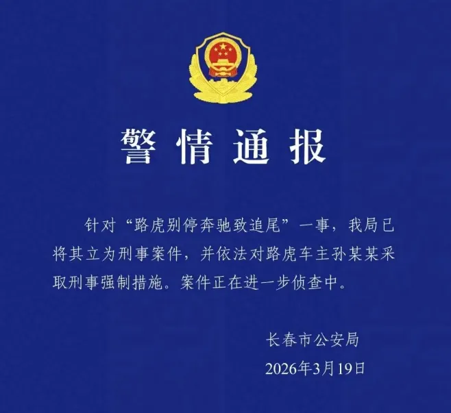 奔驰遭路虎1分钟恶意别停8次后追尾。3月19日,长春警方通报:已立为刑事案件,对路虎车主孙某某采取刑事强制措施。