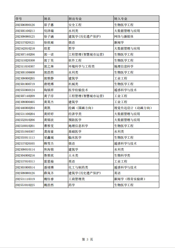 ⭐️ 根据《关于做好2025-2026学年第2学期转专业工作的通知》,经学院考核通过,以下学生获得转专业资格,现公示如下,公示截止期至2026年3月20日18时。如有异议,请于公示截止期前以书面实名形式反映至教务部学籍管理科,地点:综合管理中心235室,联系电话:67739185。