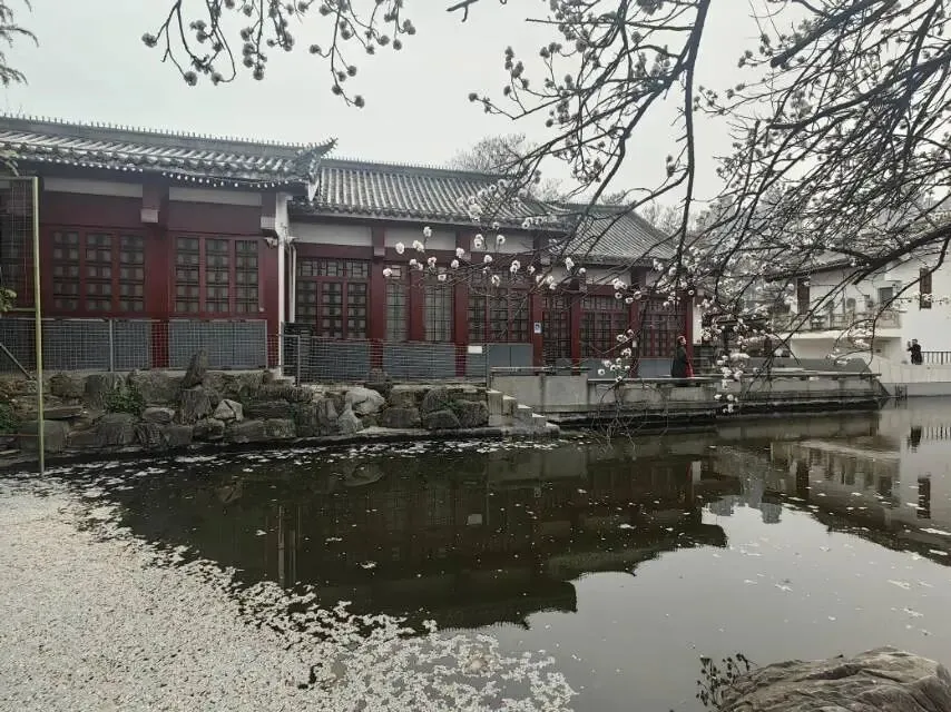 就像北宋诗人王安石在《北陂杏花》中写的:“一陂春水绕花身,花影妖娆各占春。”这一池春水环绕着杏花,岸上的花与水中的影,各占一分春色。这不正是我今天看到的景象吗?那水中的倒影,比枝头的花更多了一份朦胧的美。花开是实在的,花影是虚幻的,一实一虚之间,春天便有了层次。
