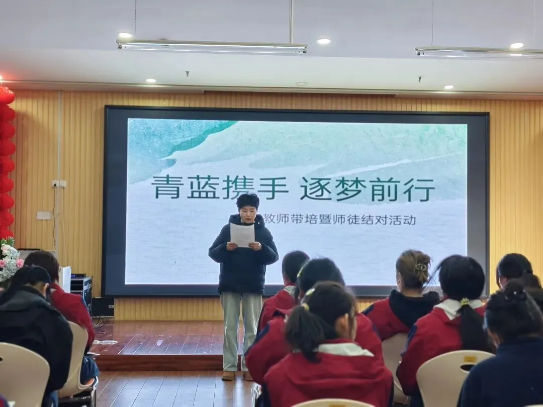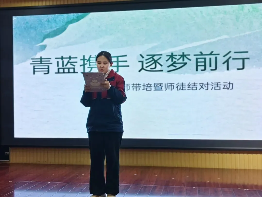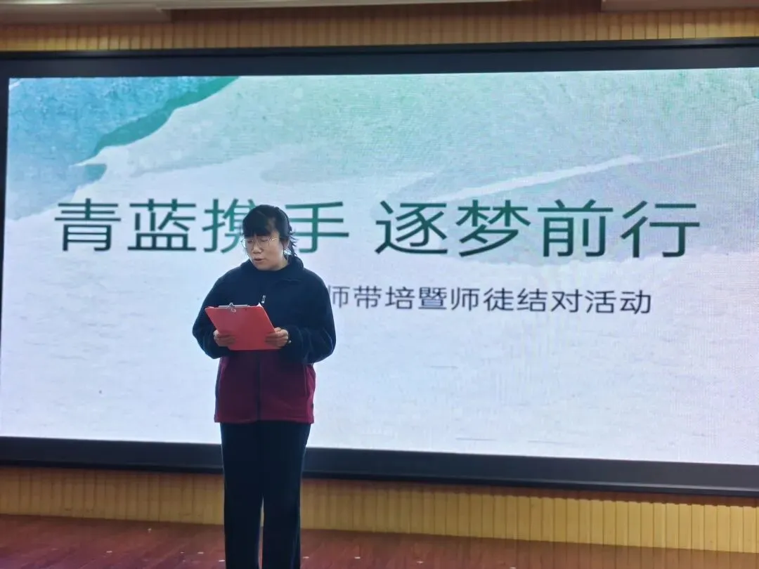 主持人以“匠心传承,青蓝共辉”拉开序幕,阐释“传、帮、带”的意义,宣告仪式正式开始。园长为活动致辞,向师傅们致敬、向青年教师寄语,强调青蓝工程是园所发展基石,期盼师徒教学相长、同心育人,用专业守护童心。