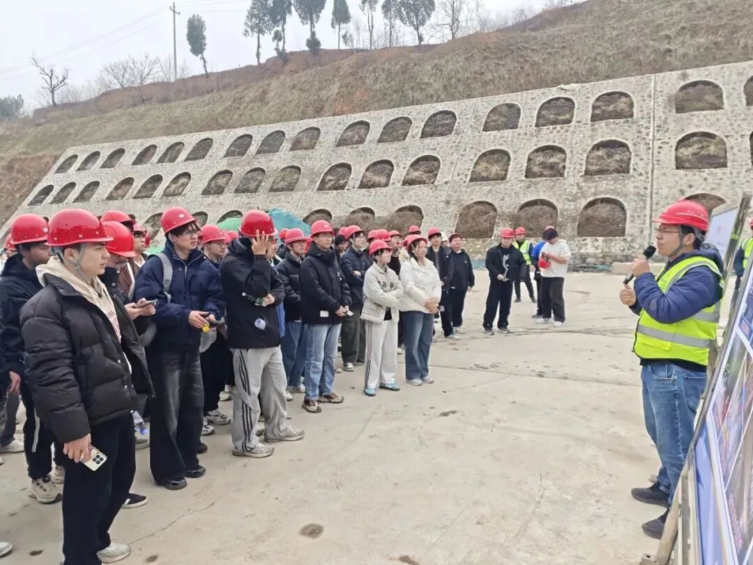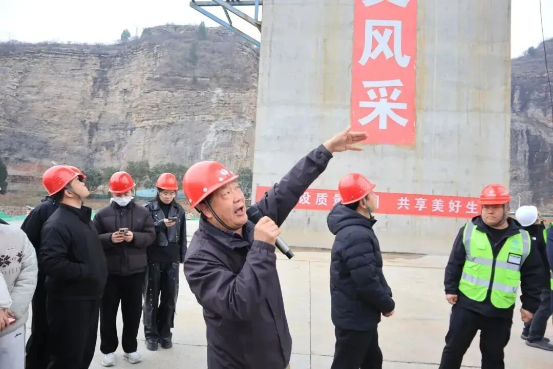 活动现场,项目工程师化身“特聘讲师”,以一线施工实践为教材,为同学们带来别开生面的工程科普课。随后,在工程师带领下,师生们先后走进庙路河大桥、安全质量管控中心、智慧梁场、长寿山隧道进口关键工点,近距离感受交通工程建设的科技力量与建设者的责任担当。