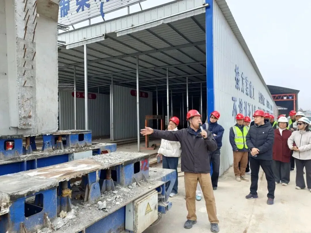 走进智慧化梁场,自动化作业流程让同学们眼前一亮。工程师演示了下沉式移动台座作业模式,介绍道:“这个移动台座节省场地、实现流水化作业,搭配自主研发的智慧管理系统,可对梁板生产全过程追踪管理。”一名同学感慨:“这就是科技赋能工程建设的力量!”工程师鼓励道:“你们作为未来专业人才,要学好知识,将来用科技为国家基建添砖加瓦。”