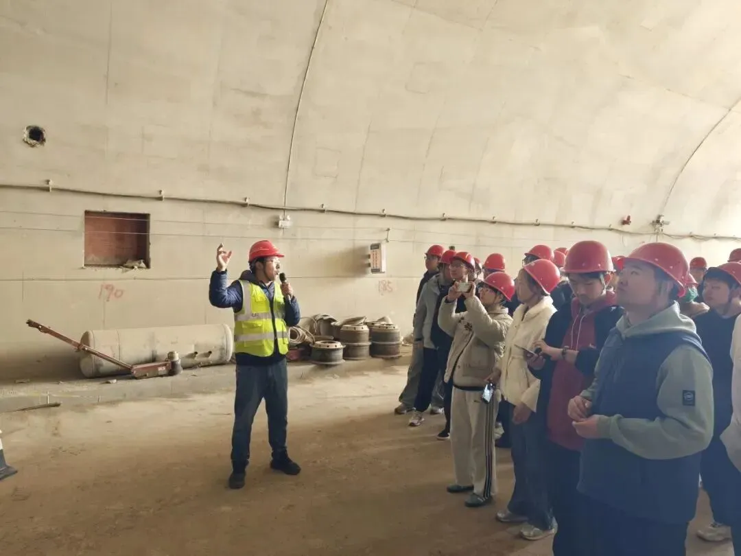 最后,师生们走进长寿山隧道,人脸识别门禁、机械通风、应急逃生通道等安全设施,让大家对隧道施工安全保障有了全面认识。工程师结合实例讲解施工技术难点与解决方案,鼓励同学们勇于探索、刻苦钻研。