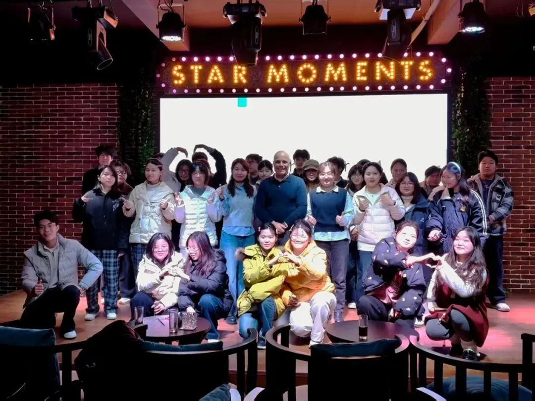在自由交流环节,同学们围绕美食、文化、语言学习等话题与Joseph展开积极互动。Joseph表示,同学们的文化分享让他倍感亲切,并回忆起了童年喜爱的功夫剧。他坦言,对同学们介绍的殷墟、龙门石窟等文化古迹充满兴趣,并勉励同学们珍惜并守护好自己的文化根脉。
