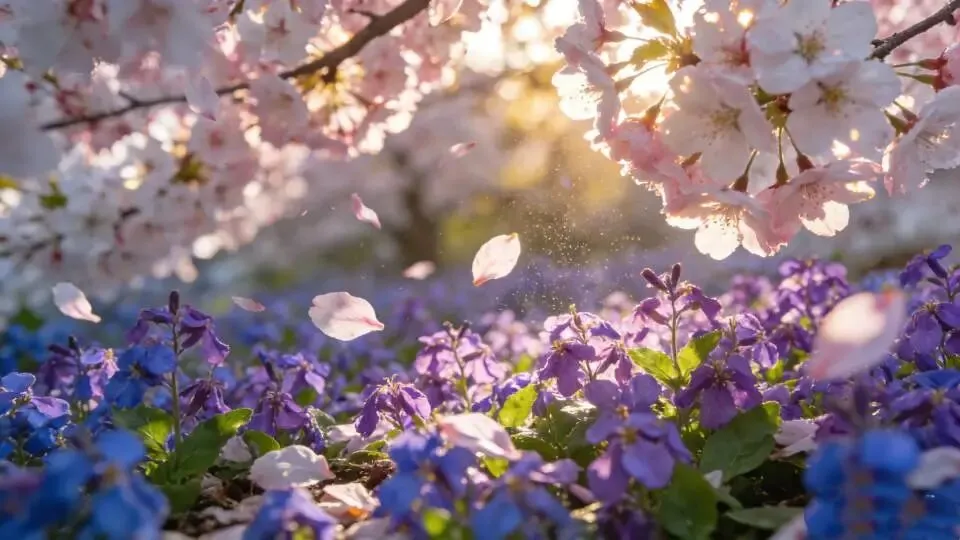 花期:樱花3月中下旬—4月中旬;二月兰同期