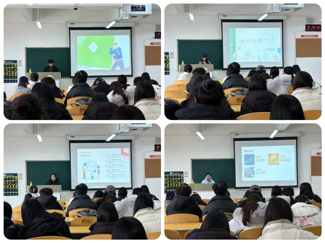 随后,五大社团负责人依次登台,结合PPT演示全面介绍社团职能、过往亮眼成果,细致讲解社团组织架构、纳新标准及新学期活动规划。各社团彰显独特魅力:旅游协会依托专业优势,打造文旅打卡、实践研学等特色活动,实现学以致用;舞蹈类社团聚焦技能提升与团队建设,用活力舞姿点亮校园生活;说唱社深耕原创创作,传递青年态度;话剧社以戏剧为媒,彰显文化育人价值,为新生加入心仪社团指明了方向。