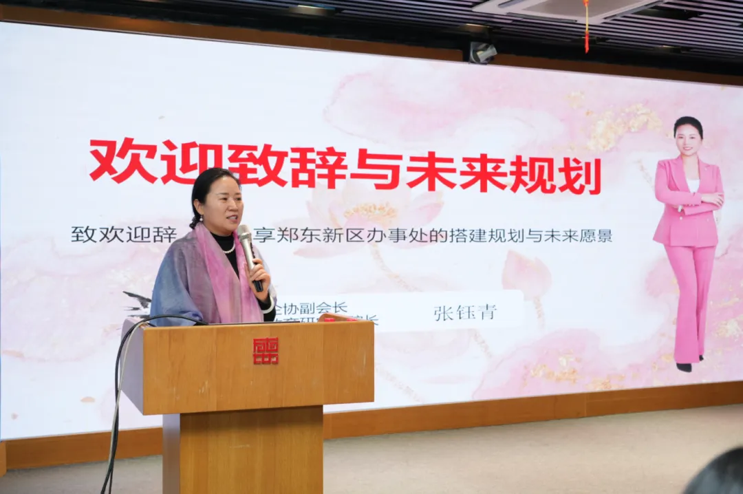 北大盛世教育研究院院长、郑州市女企业家协会副会长张钰青致欢迎致辞及分享郑动办事处未来规划