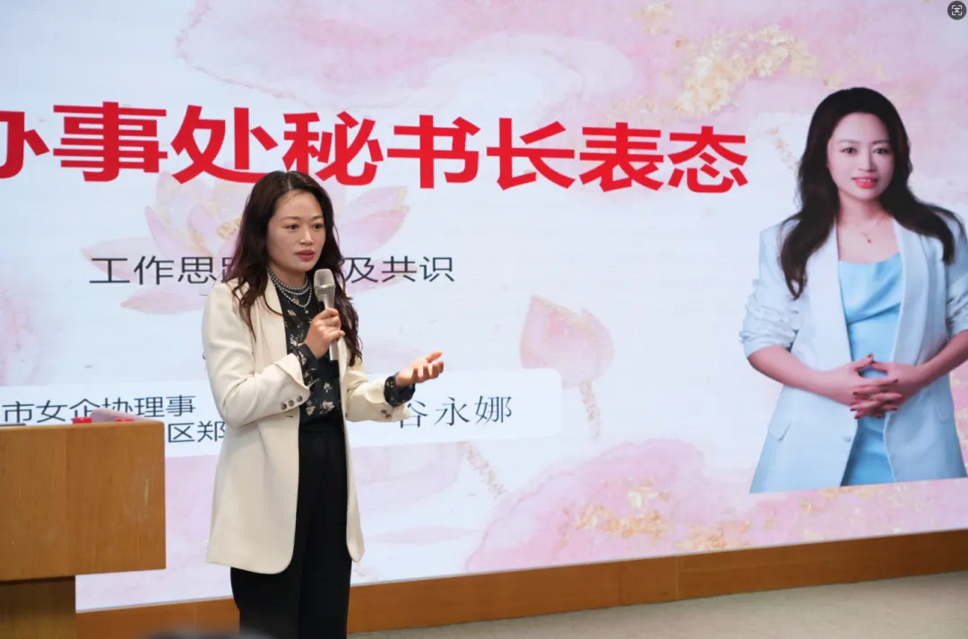 郑州市女企业家协会理事、诺亚财富负责人、拟办事处秘书长谷永娜,就郑东办事处后续运营发展作表态发言。
