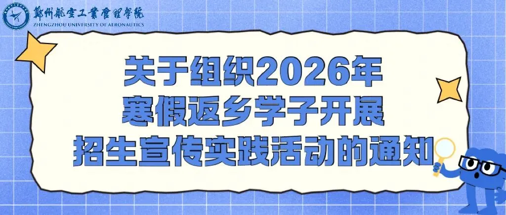 为多维度彰显我校办学特色,全景式诠释“空天报国 砺新图强”郑航精神,进一步打造具有空天特色的招生宣传品牌,经研究,决定启动2026年度招生宣传微视频制作大赛。大赛诚邀全校师生、广大校友以创意为媒、以镜头为笔,艺术化展现学校育人成果、校园风貌与精神内核,厚植爱校荣校情怀,创新讲好郑航故事,构建“人人关心招生、时时关注招生、事事关乎招生”的招生宣传大格局,让更多学子了解郑航、向往郑航、选择郑航。现将有关事宜通知如下: