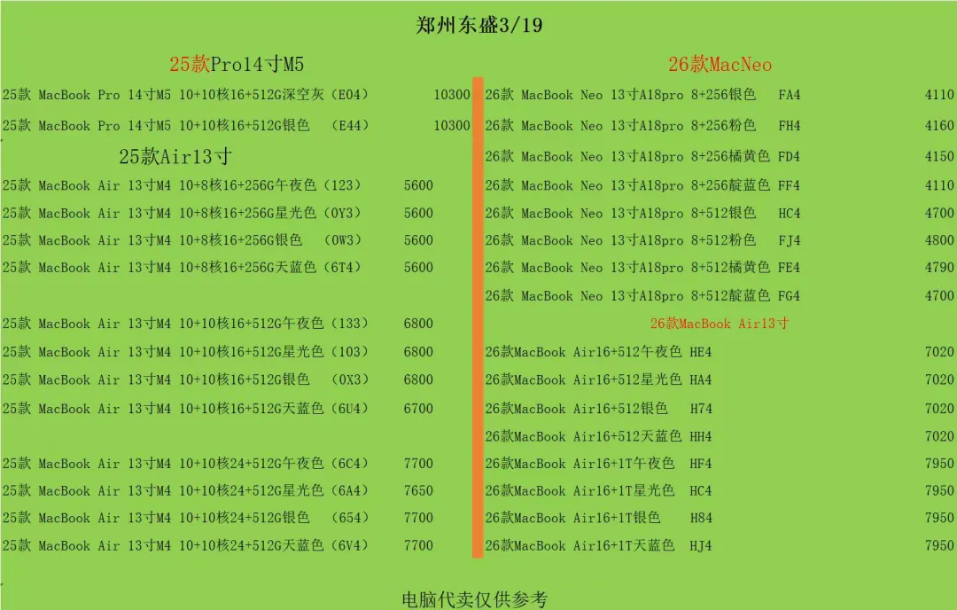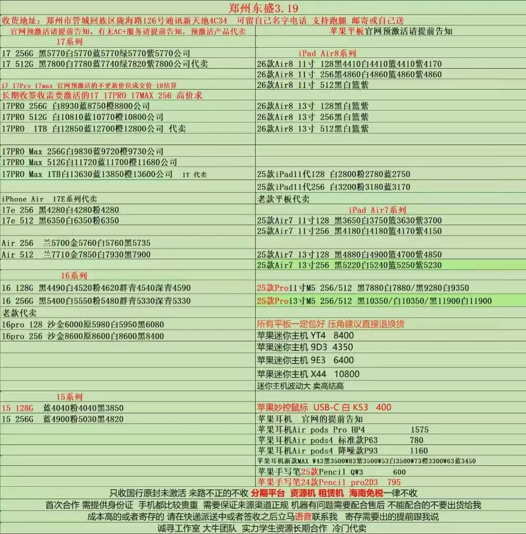 郑州东盛通讯新天地3.19号行情