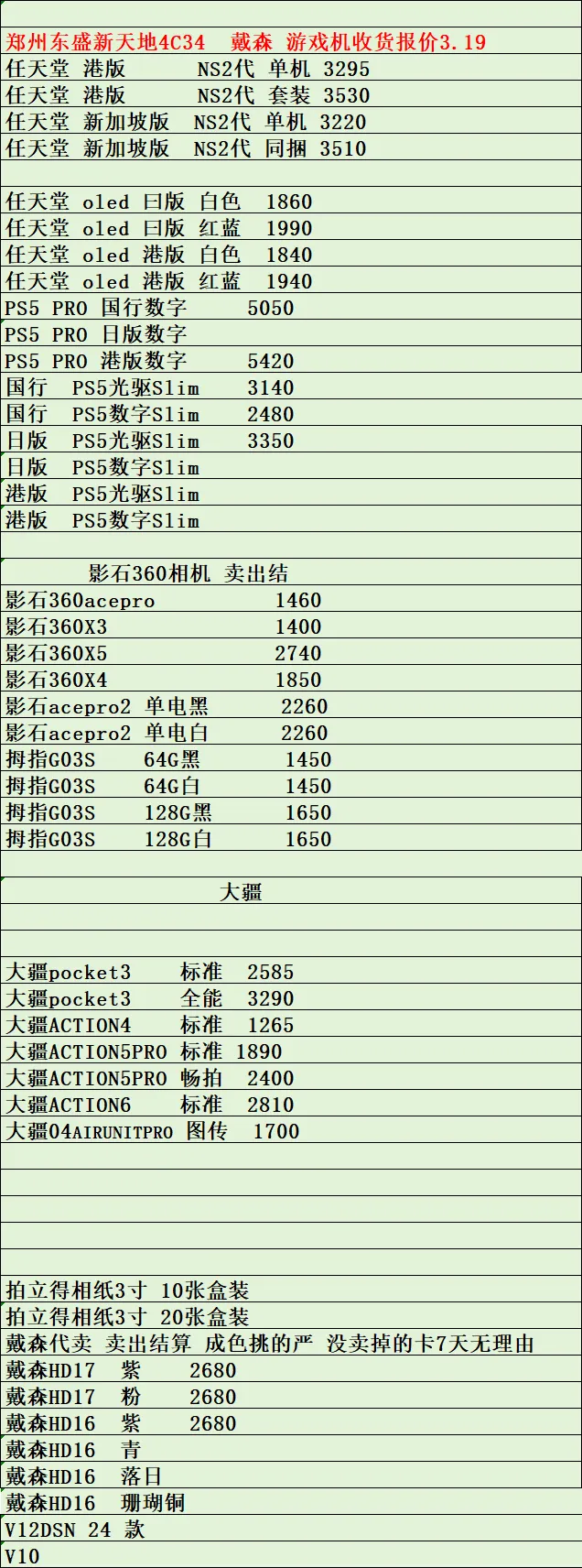 >郑州东盛通讯新天地3.19号行情