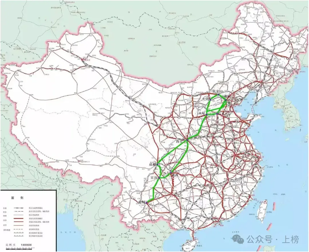 在中国高铁网络版图上,京昆通道堪称“最复杂的高速走廊”。这条纵贯华北、西北、西南的交通大动脉,由京雄城际、雄忻高铁、大西高铁、西成客专、渝西高铁、渝昆高铁等多条线路拼接而成,串联起北京、雄安、太原、西安、重庆、成都、昆明等7座核心城市,覆盖京津冀、中原、成渝、滇中等城市群,是西部陆海新通道与京津冀协同发展的重要纽带。