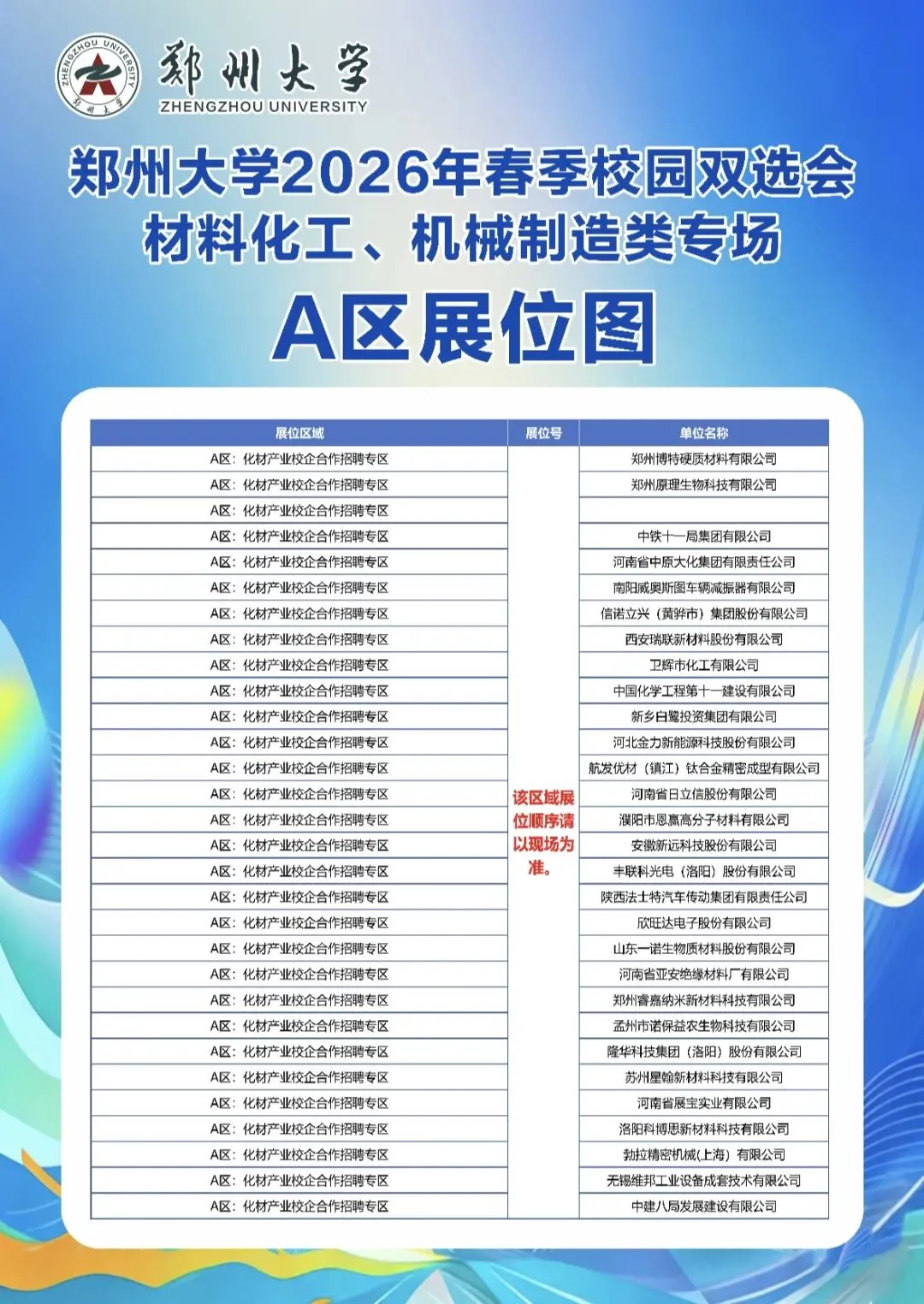 >双选会|郑州大学2026年春季校园系列双选会--材料化工、机械制造类专场