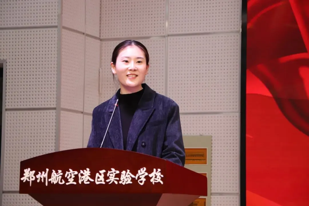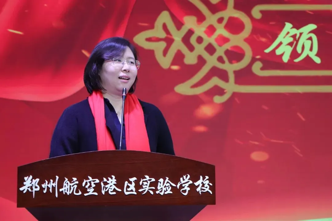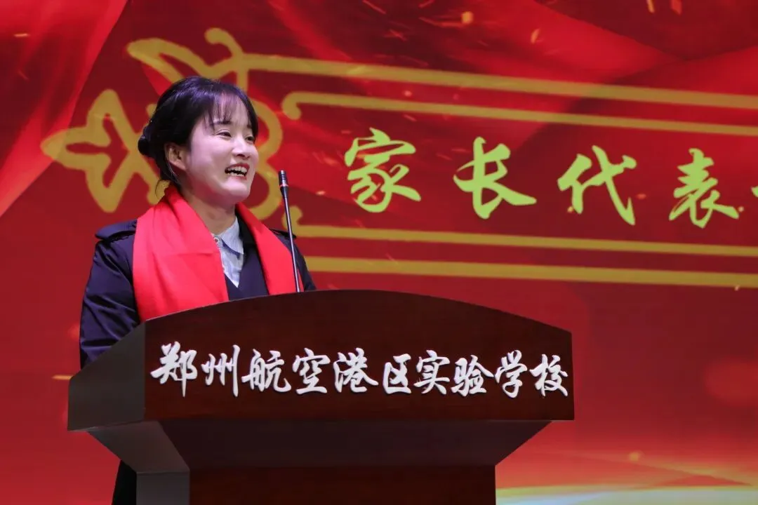 郑州航空港区实验学校家委会会长许慧慧女士作为家长代表倾情寄语,道出万千家长的心声,愿与学校同心同向、携手并肩,用陪伴守护成长。她表示,教育从不是学校的独角戏,家校社同心方能共育新人。家委会将当好助攻手、连心桥、合伙人,全力支持教联体建设,积极参与家庭教育、红色传承、亲子实践等活动,用家庭教育的温度,配合学校教育的深度,借力社会教育的广度,与学校同心同向、携手同行,共同守护孩子成长。