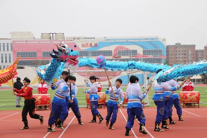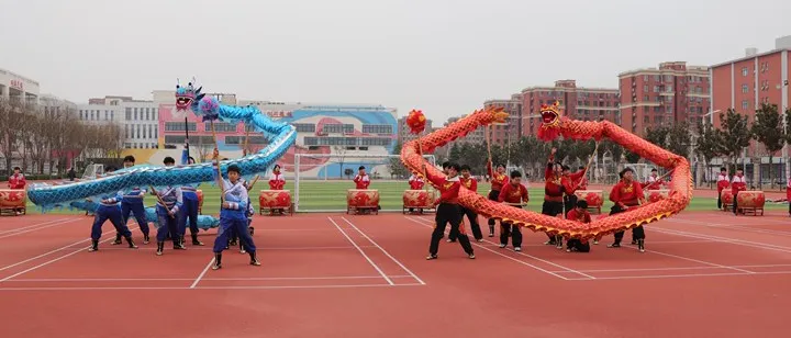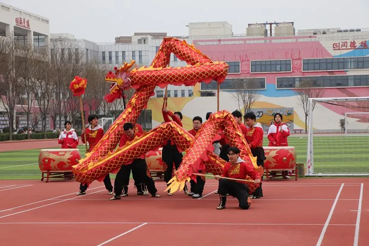 操场之上,舞龙舞狮表演热闹开演,腾跃翻转间,尽显传统文化的鲜活魅力。