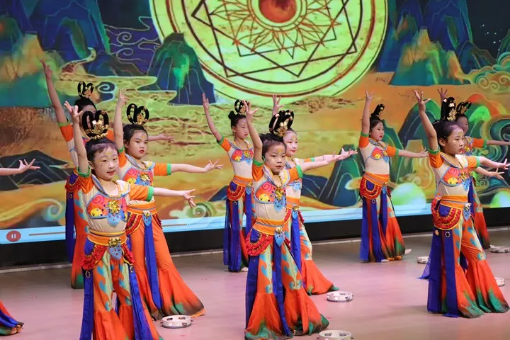 启动仪式在学生舞蹈《盛世敦煌》中拉开帷幕,少年舞者身着霓裳,以灵动舞步勾勒敦煌之美,以曼妙身姿演绎中华古韵,一招一式皆是用心,一颦一笑尽是童真,为现场呈现一场唯美大气的视觉盛宴,也让红色基因与文化底蕴在少年的演绎中静静流淌。