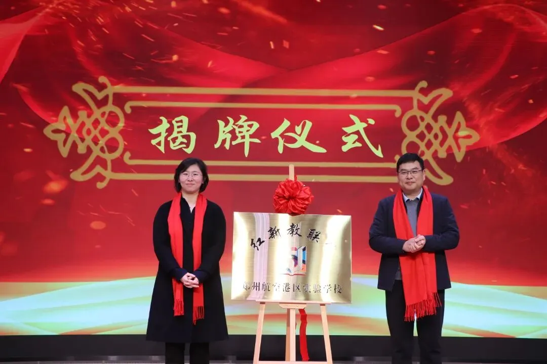 万众瞩目之下,郑州航空港区教育卫生体育局教育二科科长李彭与校长杨军伟共同为郑州航空港区实验学校“红新教联体”揭牌,红绸轻落,标志着学校家校社协同育人工作迈入全新阶段,也开启了多方聚力、共育新苗的崭新篇章。
